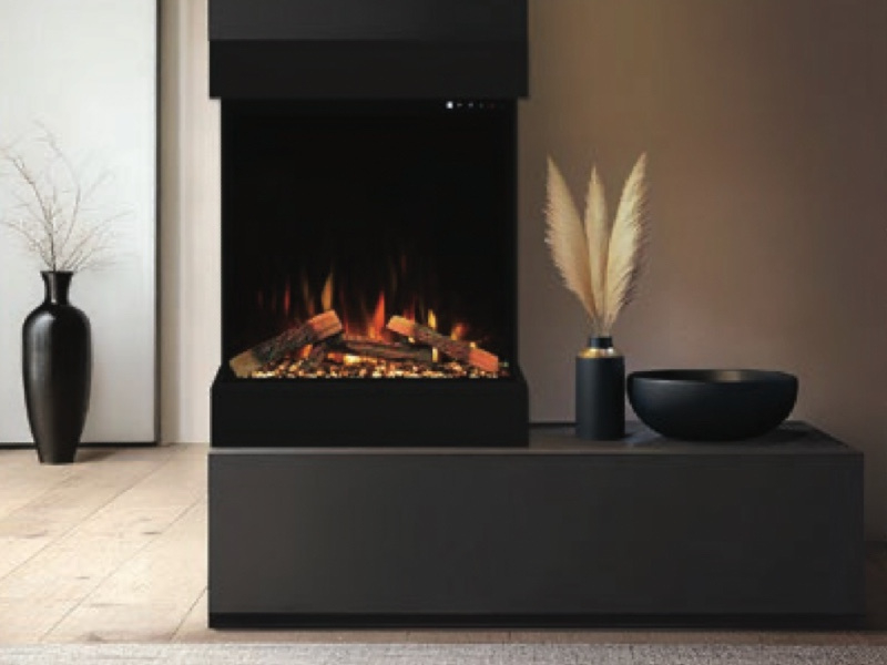 - Three-sided electric fireplace